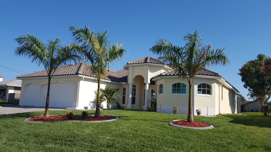 Nach der Abwägung verschiedener Baustile, haben wir uns bei der Außenansicht der Villa Alani für einen Stil entschieden, der schon auf den ersten Eindruck sehr einladend aussieht. Eine Dreifachgarage, ein Erker und der mit seinen Säulen dominant wirkende Eingangsbereich machen neugierig auf mehr. Das alles in einer freundlichen, hellen Farbe gestrichen macht das Bild in Verbindung mit den stimmigen Dachziegeln rund.