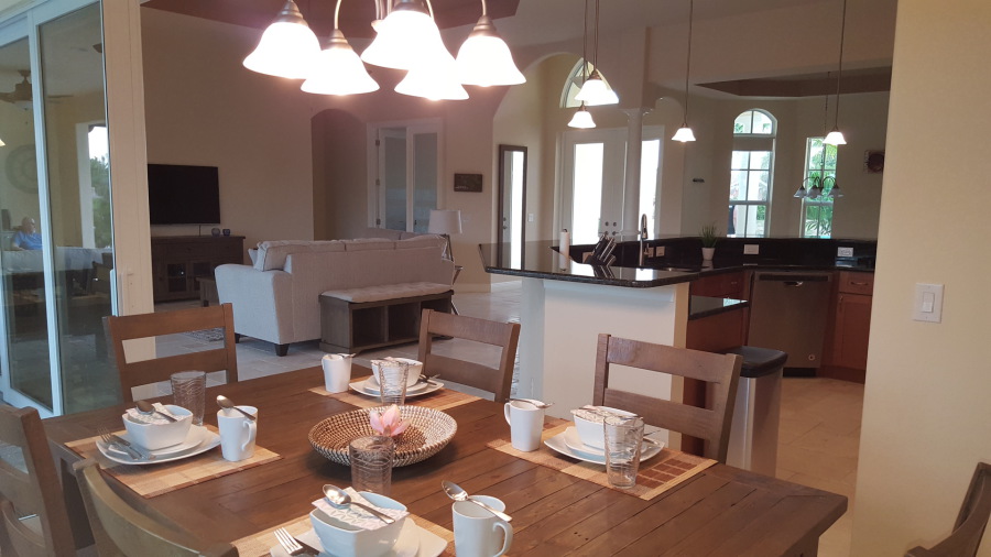 Der Essbereich liegt in Richtung Pool, so dass man hier einen schönen Blick nach draußen hat.