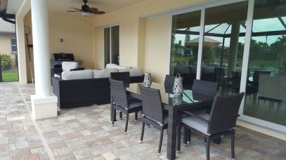 Als Lanai wird der Bereich der Terrasse bezeichnet, der durch einen Überstand vor Regen und der Witterung geschützt, aber trotzdem zum Pool hin offen ist. Da sich in Florida nicht nur zu den heißen Zeiten das Leben eher draußen als drinnen abspielt, war uns die Ausstattung des Lanai sehr wichtig.