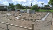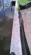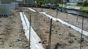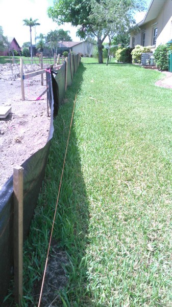 Als erstes wurde das Grundstück abgesteckt und "gelevelt", soll heißen für das darauf zu bauende Haus glatt gezogen und vorbereitet. Planen zum Schutz benachbarter Grundstücke und des Kanals wurden ebenfalls installiert.