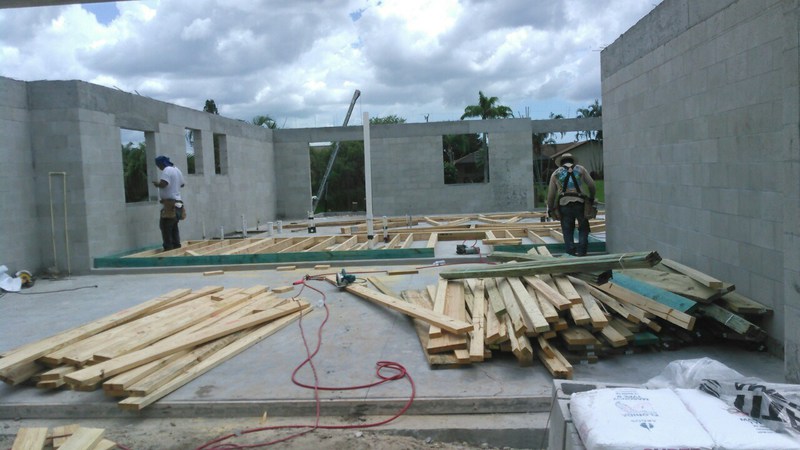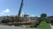 Nachdem die Concrete-Guys, wie unser Bauunternehmer sie bezeichnet, die Baustelle aufgeräumt haben, zwischenzeitlich bereits auch das weitere Holz für die Zimmerarbeiten angeliefert wurde, ist es heute am 17.08. weiter gegangen.