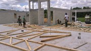 Die Vorbereitung läuft. Die Zimmermänner haben heute Teile der Dachkonstruktion und eine tragende Innenwand zusammen genagelt.