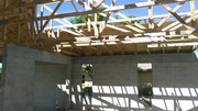 25.08. Fertig, das Dach ist im Rohbau zu. Ein paar wenige Feinarbeiten müssen noch erledigt werden. So z.B. die Rundbögen zwischen den Eingangssäulen, aber das könnte auch noch später gemacht werden. Mal schauen.
