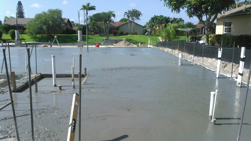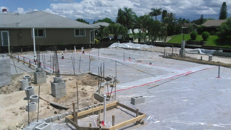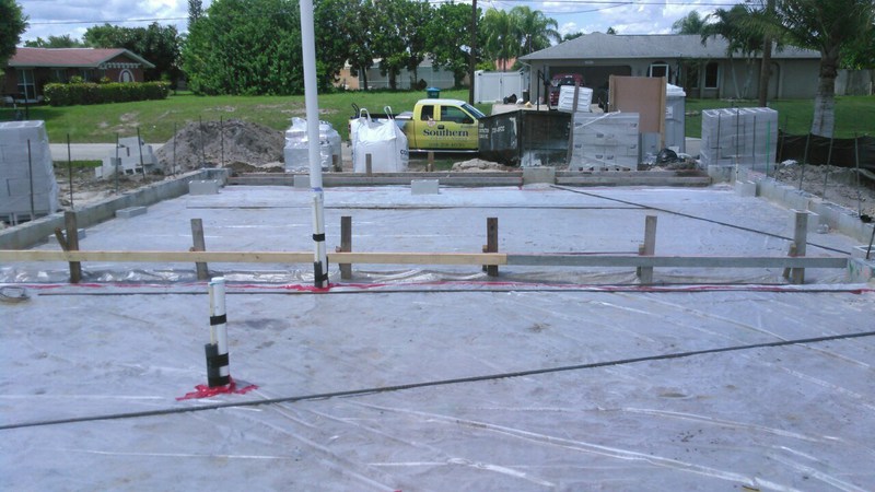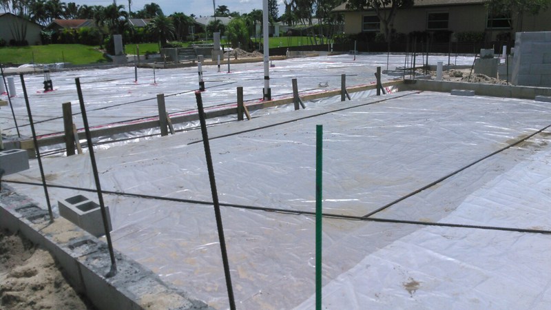 Final kommt noch überall eine Folie drüber, welche potentielle Feuchtigkeit von der Platte fernhalten soll. Auch an die Podeste für die außenliegenden Geräte, wie Klimaanlage und Poolausrüstung wurde gedacht. So, dann kann es ja losgehen...