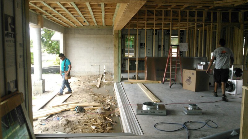 Auf einem Foto sieht man sogar schon die Laufschienen der großen Balkon- und Esszimmertüren. Man kann diese maximal möglich aufschieben und bekommt so eine wunderbare Weite und einen großen Raum zum Lanai- und Poolbereich.
