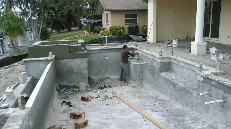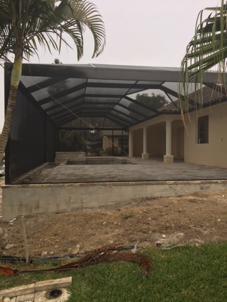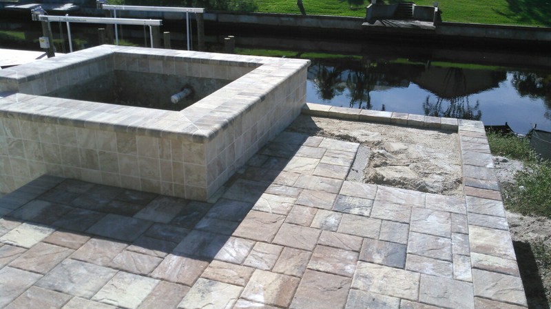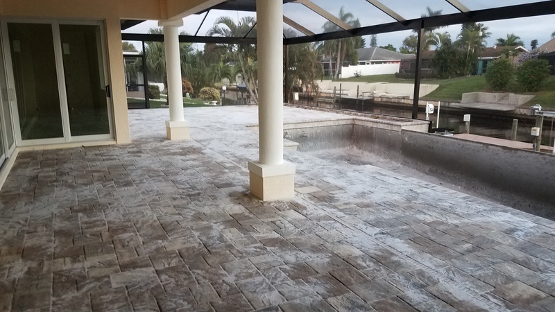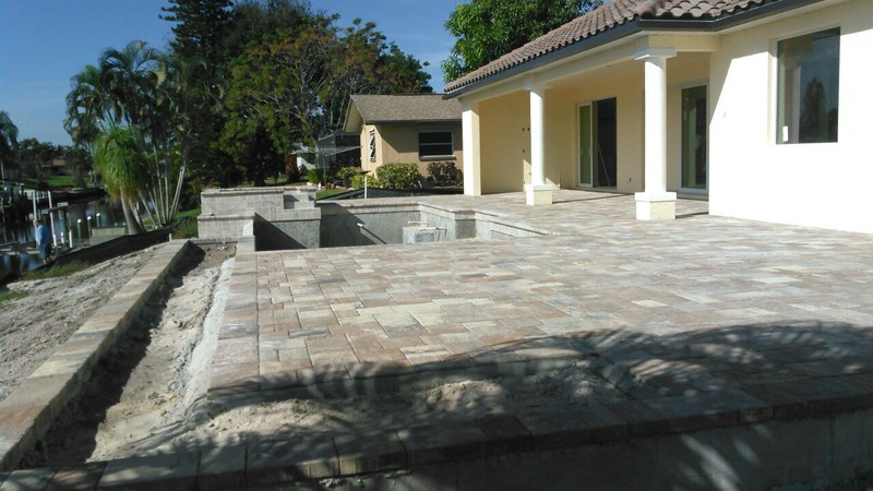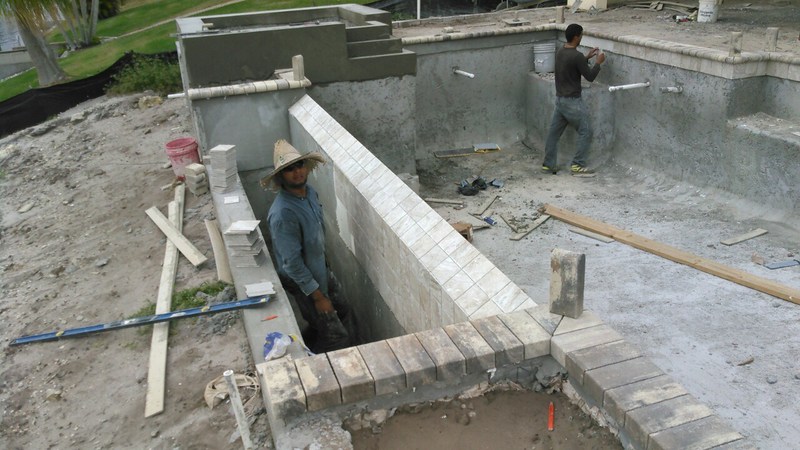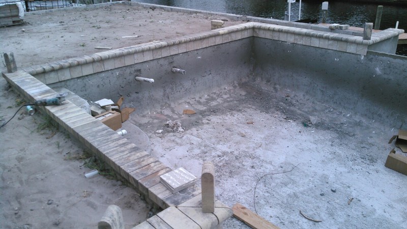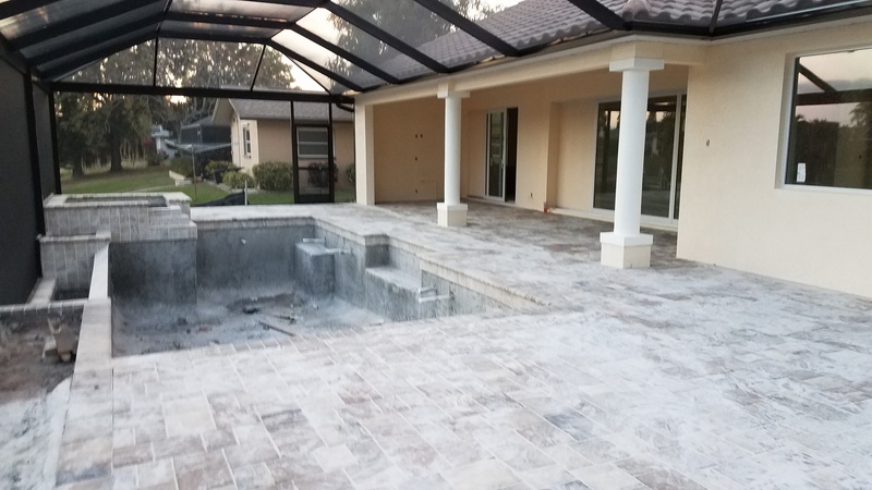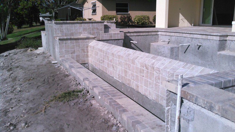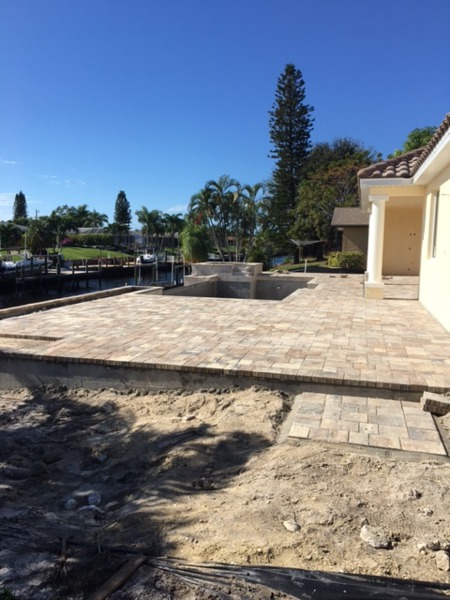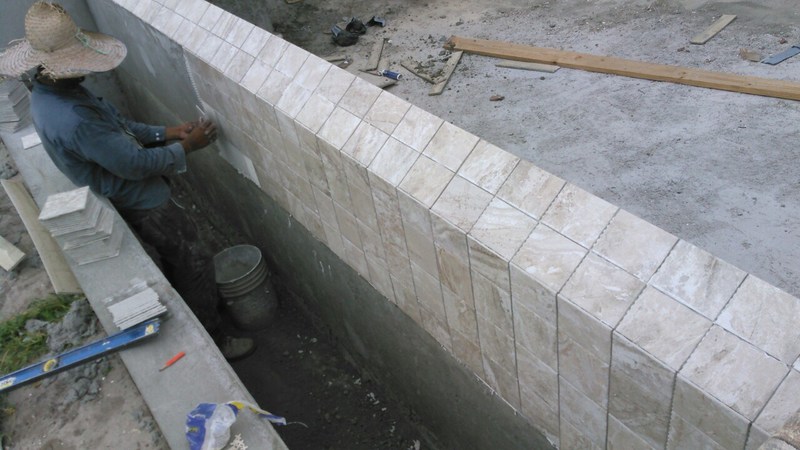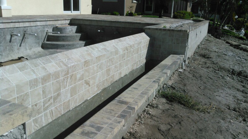 Parallel zum Innenausbau sind das Pflastern des Pooldecks und Lanais, sowie die Fliesenarbeiten am Pool und Spa abgeschlossen worden.