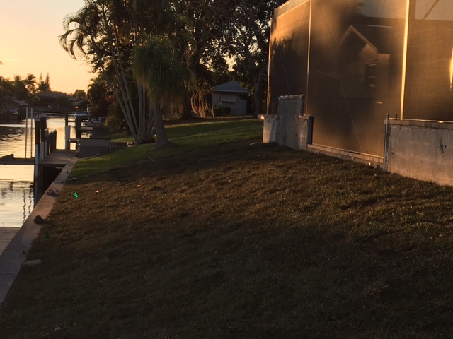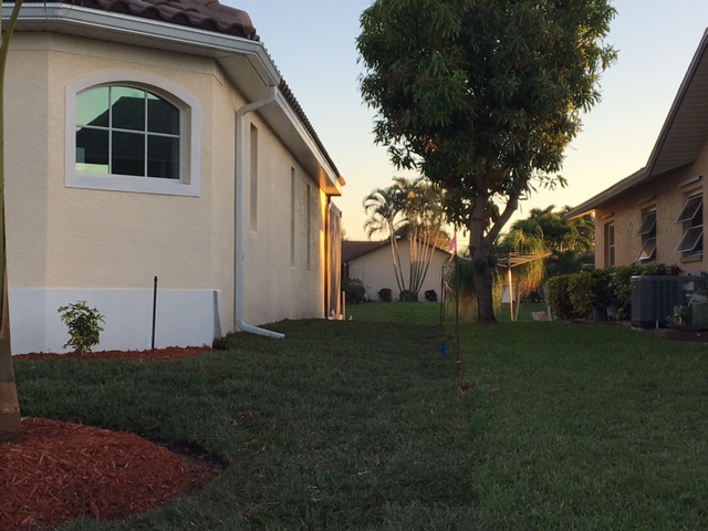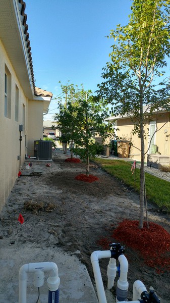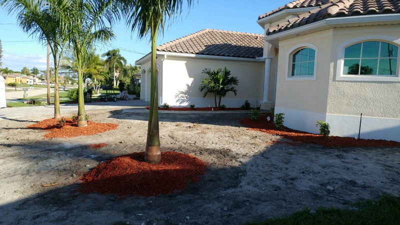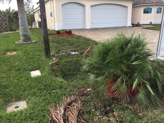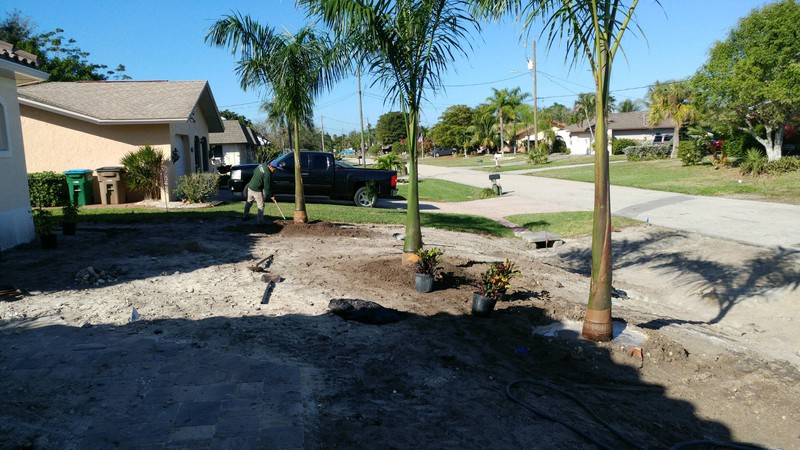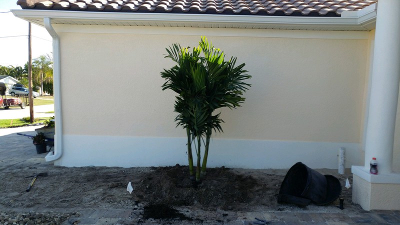 Nachdem heute (23.01.) die kleine Palme links von der Einfahrt entsprechend unseren Wünschen versetzt wurde, sind die Arbeiten des Landschaftsgärtners vorerst erledigt. Morgen werden die